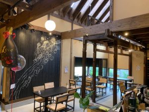 最もJinenを評価頂けたのは、昨年店舗の古民家リフォームを行う時点(2020年4月~)で、コロナ騒動は始まっていて、これからはお店の換気の重要性がますます問われると考え、設計の田村さんや工務店の津田さんにお願いして、いろいろ知恵を絞って頂き、「思い切った吹き抜けの天井高」「解放できる大きなテラス扉」「店内換気扇の設置」「オープンキッチン内の換気窓」「古家の建具を再利用した隙間風の取り込み(笑)」などでした!